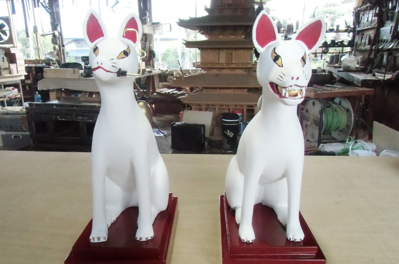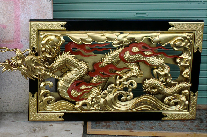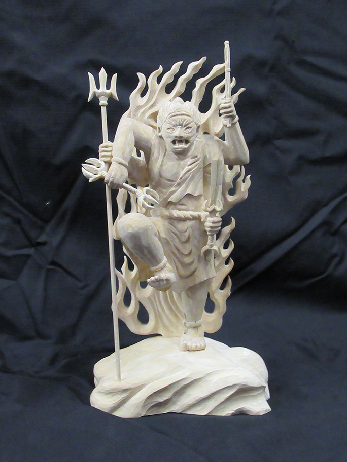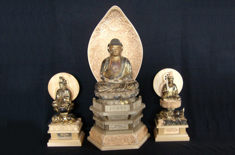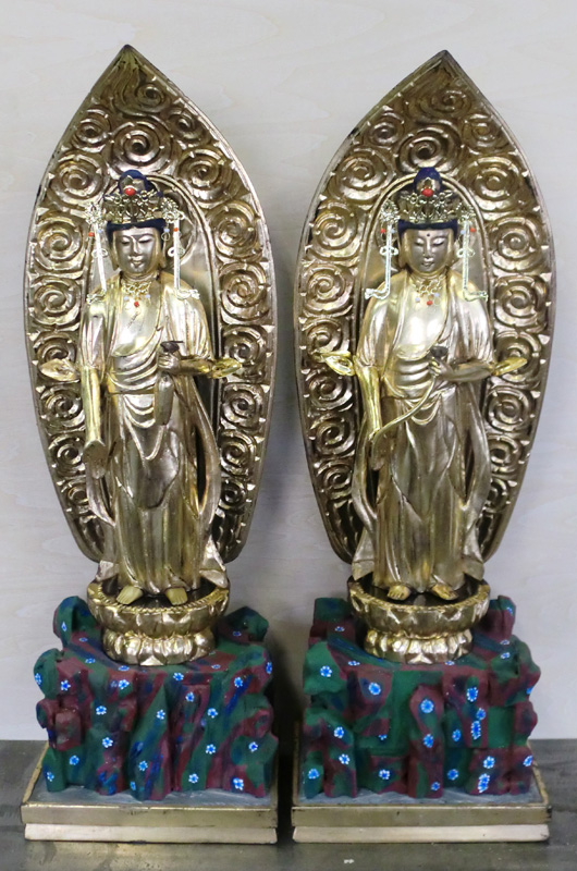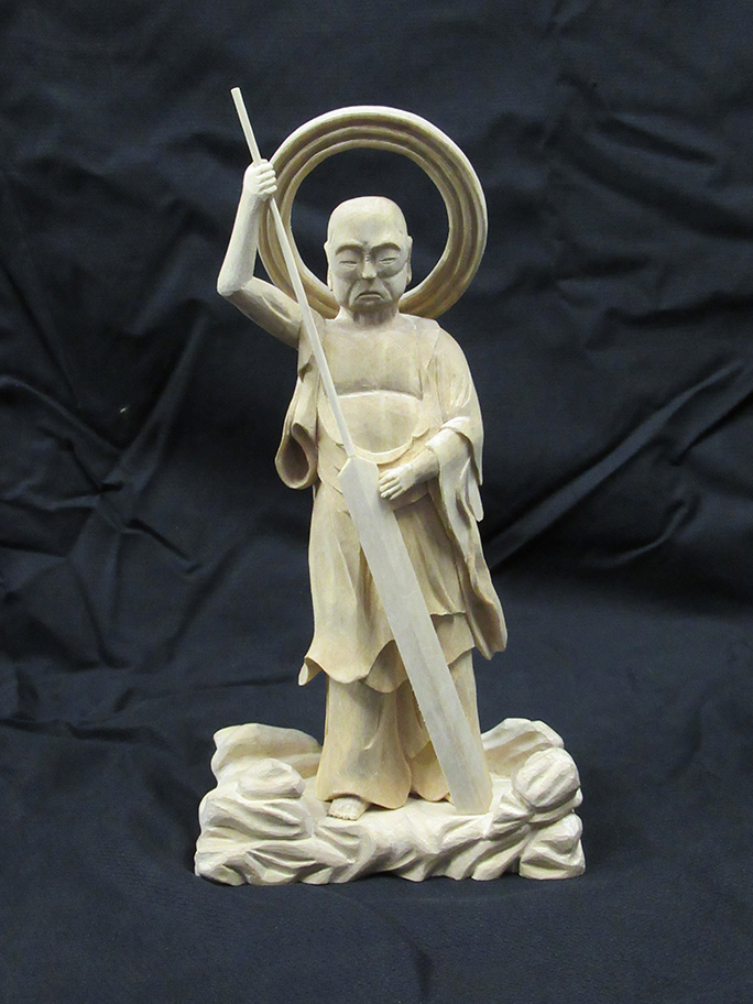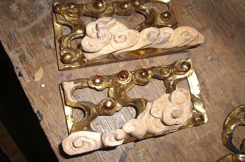 胴体部分は洗浄後金箔補修。手足、持ち物が不足しているものは作り、塗装・金箔仕上げ。