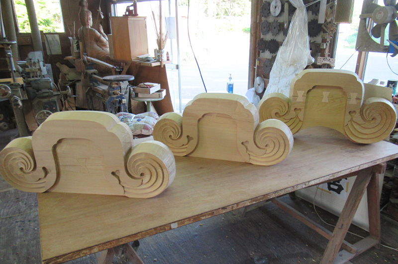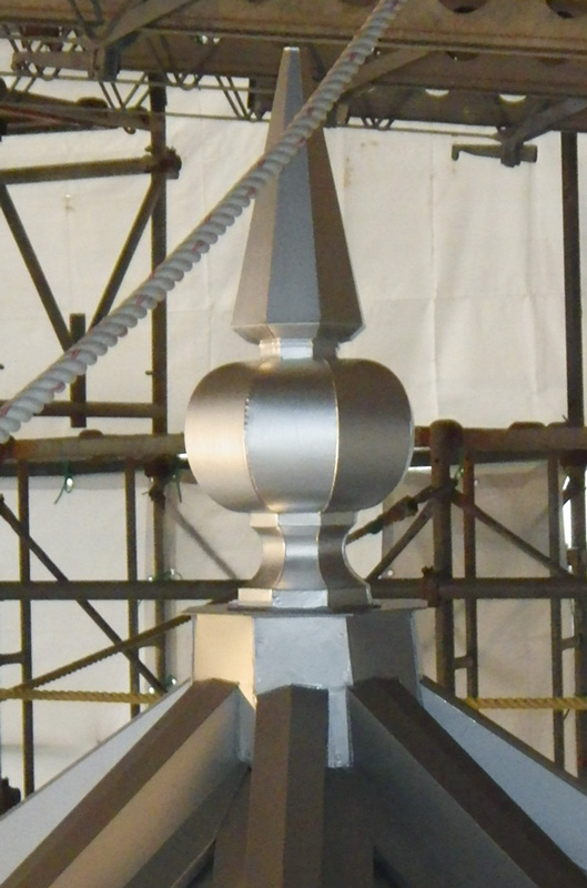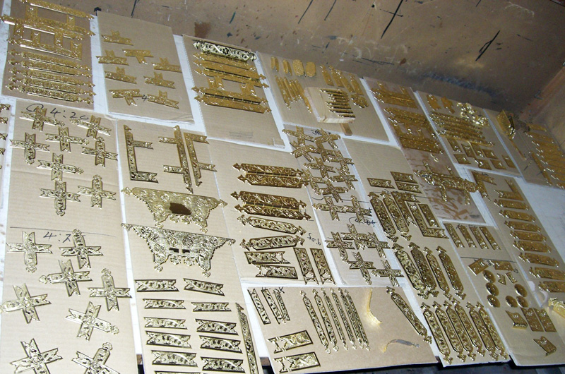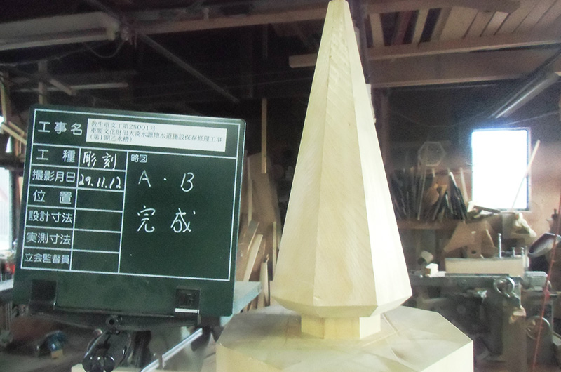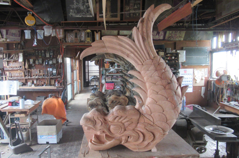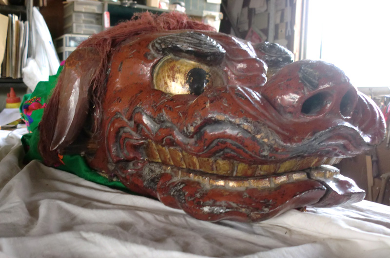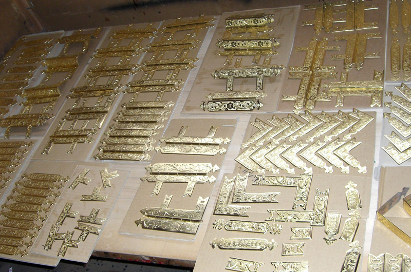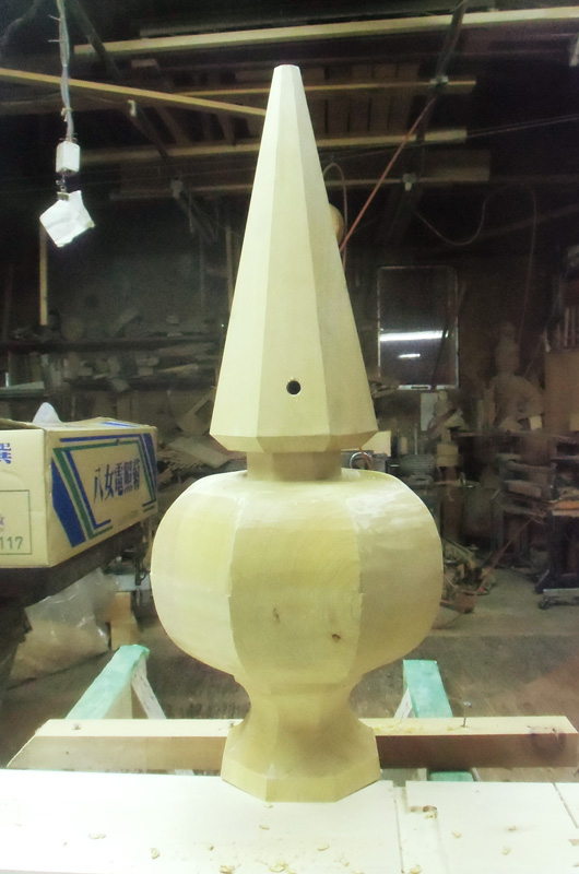胴体部分は洗浄後金箔補修。手足、持ち物が不足しているものは作り、塗装・金箔仕上げ。